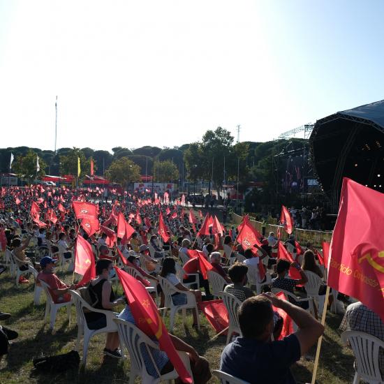 Nas celebrações dos 80 anos da Vitória sobre o nazi-fascismo, a Orquestra Sinfonietta de Lisboa, deu início à Festa do Avante! de 2025 com um programa dedicado à Paz com uma evocação especial aos palestinianos da Faixa de Gaza. A Palestina esteve presente em toda a Festa. Numa edição onde se destacaram as colaborações entre artistas, recebemos música de todo o mundo e fizemos uma viagem pela música popular portuguesa, entre o fado e a música eletrónica. Inaugurámos exposições, desde uma das mais concorridas Bienais de Artes Plásticas à arte popular com os Tapetes de Arraiolos. Na ciência e no desporto o mote foi a possibilidade da experiência coletiva. Tivemos teatro para crianças e adultos. Debatemos o presente apontando para o futuro, da agricultura à inteligência artificial, e apresentámos dezenas de livros. Comemos e bebemos nesta grande mesa do mundo. Houve tempo para a família e fomos o palco de uma juventude sem fim.