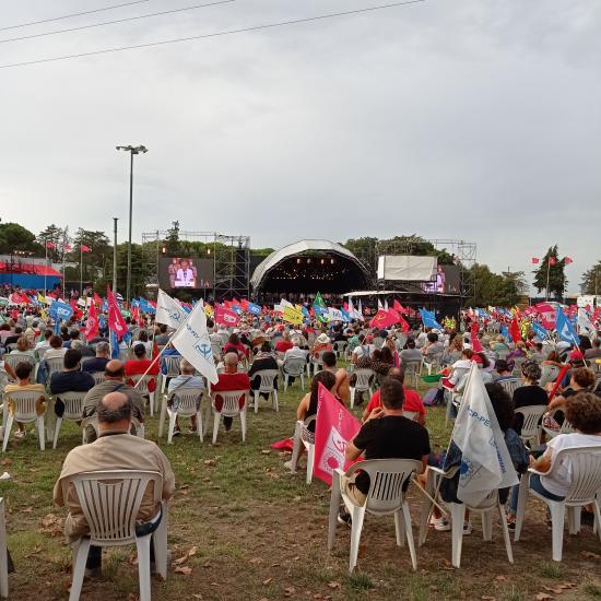 Nas celebrações dos 80 anos da Vitória sobre o nazi-fascismo, a Orquestra Sinfonietta de Lisboa, deu início à Festa do Avante! de 2025 com um programa dedicado à Paz com uma evocação especial aos palestinianos da Faixa de Gaza. A Palestina esteve presente em toda a Festa. Numa edição onde se destacaram as colaborações entre artistas, recebemos música de todo o mundo e fizemos uma viagem pela música popular portuguesa, entre o fado e a música eletrónica. Inaugurámos exposições, desde uma das mais concorridas Bienais de Artes Plásticas à arte popular com os Tapetes de Arraiolos. Na ciência e no desporto o mote foi a possibilidade da experiência coletiva. Tivemos teatro para crianças e adultos. Debatemos o presente apontando para o futuro, da agricultura à inteligência artificial, e apresentámos dezenas de livros. Comemos e bebemos nesta grande mesa do mundo. Houve tempo para a família e fomos o palco de uma juventude sem fim.
