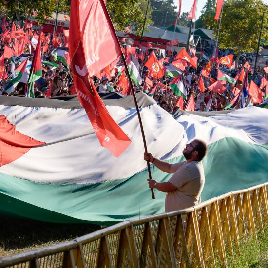 Nas celebrações dos 80 anos da Vitória sobre o nazi-fascismo, a Orquestra Sinfonietta de Lisboa, deu início à Festa do Avante! de 2025 com um programa dedicado à Paz com uma evocação especial aos palestinianos da Faixa de Gaza. A Palestina esteve presente em toda a Festa. Numa edição onde se destacaram as colaborações entre artistas, recebemos música de todo o mundo e fizemos uma viagem pela música popular portuguesa, entre o fado e a música eletrónica. Inaugurámos exposições, desde uma das mais concorridas Bienais de Artes Plásticas à arte popular com os Tapetes de Arraiolos. Na ciência e no desporto o mote foi a possibilidade da experiência coletiva. Tivemos teatro para crianças e adultos. Debatemos o presente apontando para o futuro, da agricultura à inteligência artificial, e apresentámos dezenas de livros. Comemos e bebemos nesta grande mesa do mundo. Houve tempo para a família e fomos o palco de uma juventude sem fim.